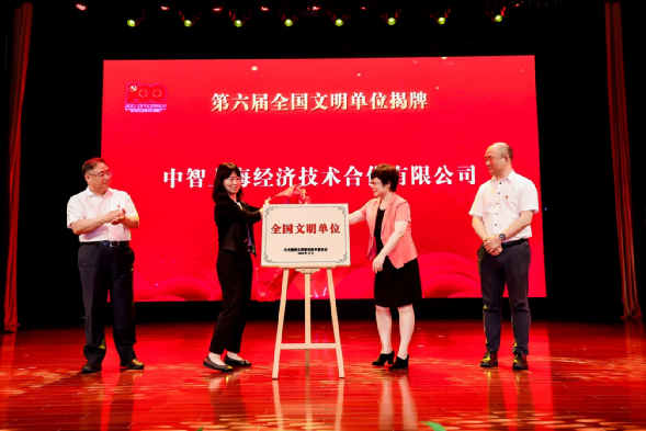 大會隆重舉行了全國文明單位—中智上海經(jīng)濟技術合作有限公司揭牌儀式,在集團黨委書記、董事長卜玉龍和上海市文明辦副主任唐洪濤共同見證下,中智上海公司黨委書記、副總經(jīng)理李雙和上海市徐匯區(qū)委宣傳部副部長、文明辦主任楊海英共同揭牌。