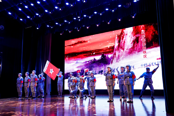 表彰中間,來自集團各條戰(zhàn)線的員工穿插表演了《長征組歌》《英雄贊歌》《不忘初心 向黨表白》《燈火里的中國》《華夏》《黨建rap》等反映中國共產(chǎn)黨革命、建設、改革和進入新時代各個時期歷史及黨的十八大以來,在以習近平同志為核心的黨中央堅強領導下,集團改革發(fā)展和黨建工作取得新成效的精彩節(jié)目,集體合唱《歌唱祖國》把大會推向高潮。