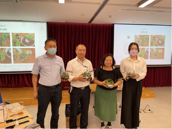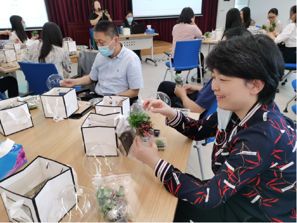 講座后,進(jìn)行現(xiàn)場互動(dòng),參加活動(dòng)的職工親自動(dòng)手,制作桌面微景觀盆栽。